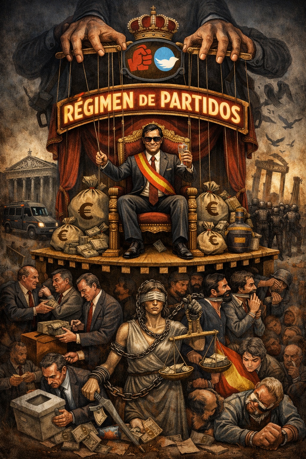 La corrupción no comienza cuando se roba dinero público ni cuando se reciben subvenciones. Comienza mucho antes, cuando se acepta participar en un régimen políticamente ilegítimo. En el Estado de partidos no hay corruptos y honrados: hay integrados y excluidos, por la fuerza o voluntariamente. Y todo aquel que se integra en el sistema acepta su lógica, su moral y su corrupción estructural. Se corrompe a sabiendas.