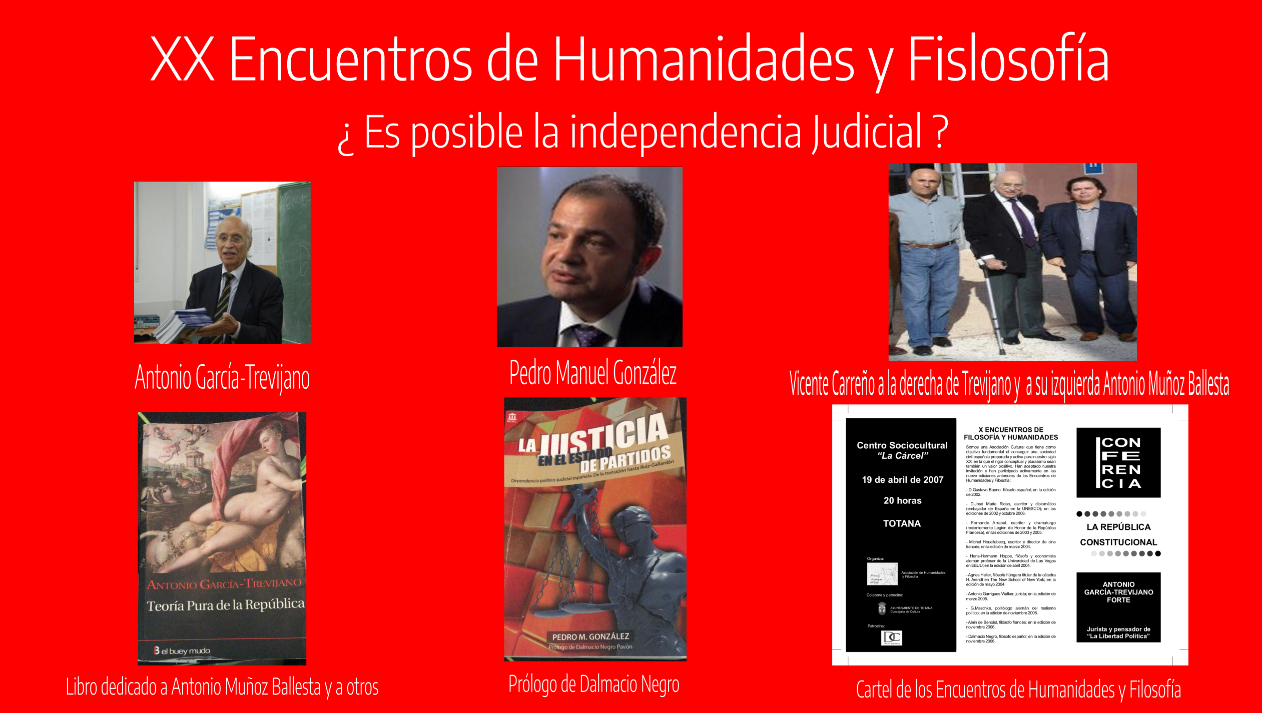 Pedro M. González participó ayer, 29 de diciembre de 2020, en «XX Encuentros de Humanidades y Filosofía». Asimismo intervino en dicho encuentro Vicente Carlos Carreño, con la presentación y dirección de Antonio Muñoz Ballesta. El tema abordado fue el siguiente: ¿es posible la independencia judicial?