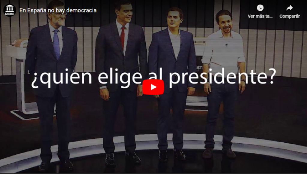¿Crees que eres libre? Piensa ¿Y si toda tu vida te hubieran engañado? ¿Te lo imaginas? ¿Quieres saber la verdad? ¿Quién elige al presidente del Gobierno? ¿Quién elige a los diputados? ¿Ves que algo no «encaja» en España? En España no hay democracia.