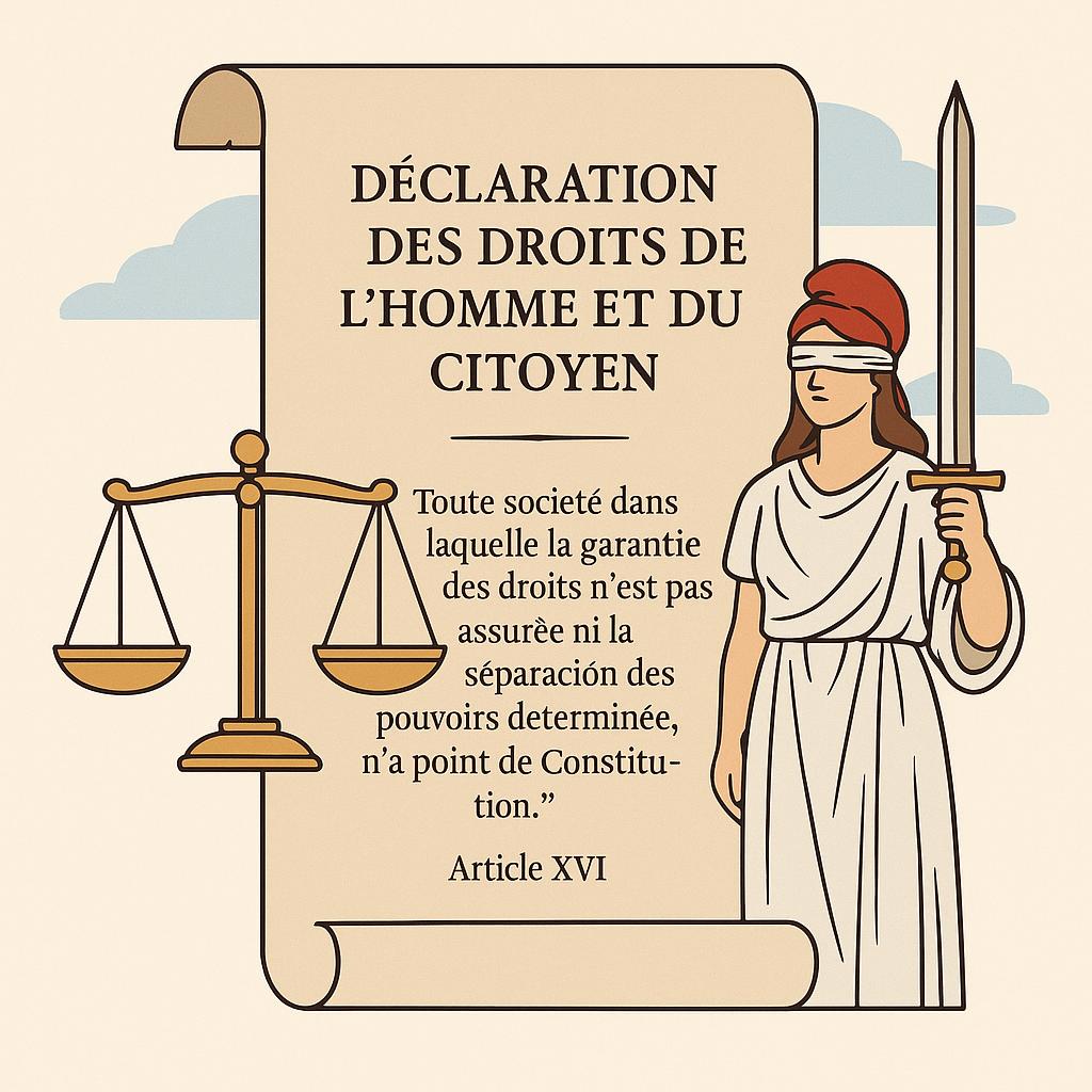 «Toute société dans laquelle la garantie des droits n’est pas assurée ni la séparation des pouvoirs déterminée, n’a point de