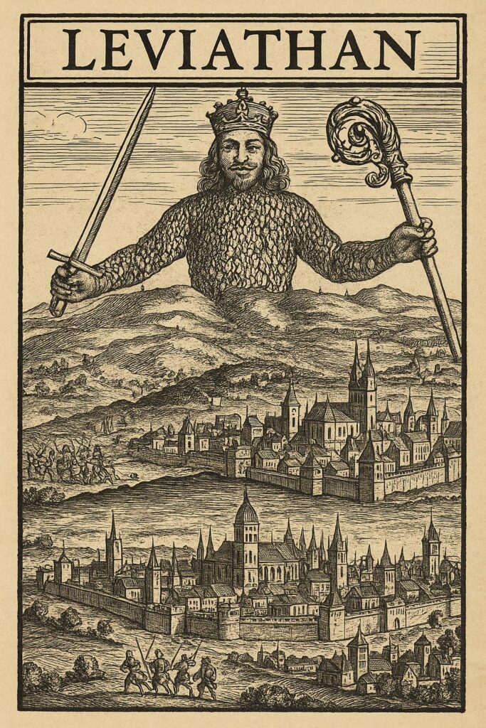 Leviathan «[T]omando para sí poderes y conceptos» exclusivos de la ecclesia, «no reconociendo ningún poder en el exterior» y «monopolizando […]