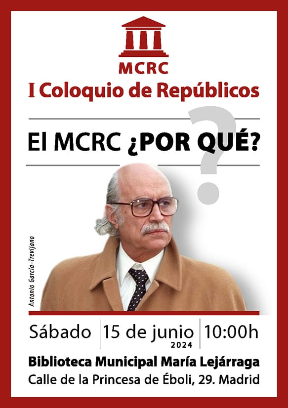 El sábado 15 de junio va a celebrarse el Primer Coloquio de Repúblicos, una reunión de los miembros del MCRC para debatir asuntos relacionados con la asociación y su acción, tanto política como cultural. El encuentro tendrá lugar entre las 10:00 y las 13:30 horas.