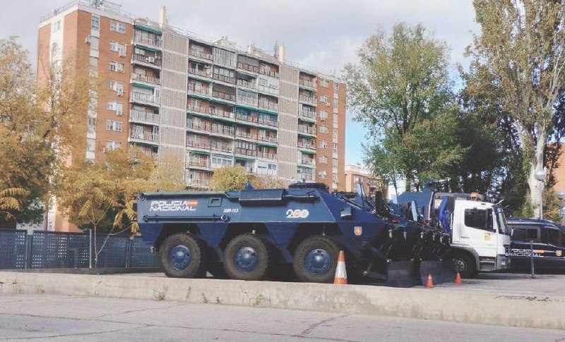 Esta mañana en Madrid se han podido ver vehículos blindados de la Unidad de Intervención Policial (UIP), listos para el operativo que está teniendo lugar ahora mismo en Madrid como consecuencia de las manifestaciones convocadas en Ferraz (sede del PSOE en la capital), con el propósito de mostrar rechazo popular al acuerdo de amnistía.
