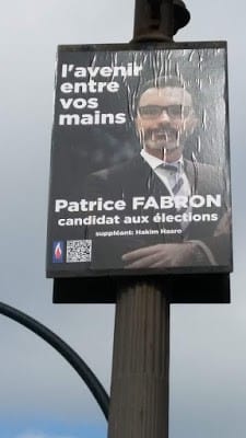 una farola un cartel de propaganda electoral donde un candidato se postulaba para elecciones … en Marsella.