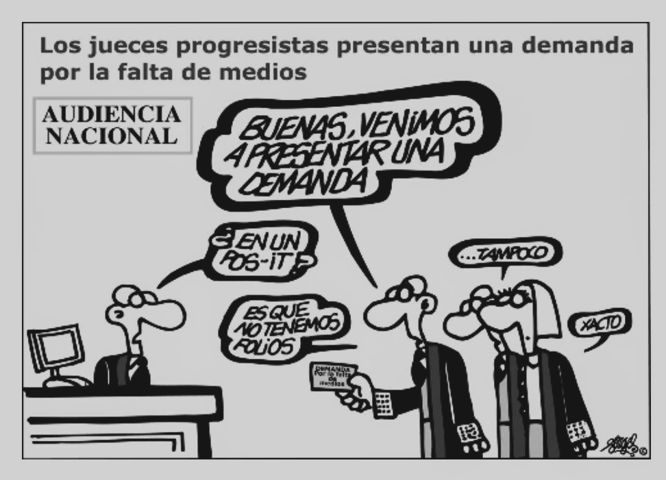 Tal configuración burocrática de la Justicia, como mero tentáculo administrativo, simplifica la respuesta a problemas de hondo calado. El Juez, convertido en funcionario ministerial, se limita así a reclamar mayores dotaciones presupuestarias como única salida al colapso de su parcela administrativa. Si existiera dignidad en la judicatura, su voz se levantaría para reclamar su independencia, incluida la presupuestaria, y no para solicitar más dinero de un Ejecutivo en reconocimiento expreso de supeditación al poder político.