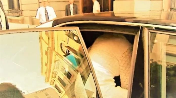 Simultáneamente, el mayordomo mayor a su servicio, con las manos en los bolsillos, que es lo nunca visto en materia de servidumbre doméstica, se dedica a observar en la distancia, sin atender a su señora. Y uno de los guardias de a salto de mata, que no de asalto, hace vagos ademanes de contención de la turbamulta preguntona, mientras se ríe de la situación. Ella, toda digna pero con los achaques de altiva, taimada y soberbia que ha adquirido a fuer de contagio en ese lupanar, después de lograr su espacio en los adentros del coche de Estado, profiere un “¡muchas gracias!” a la nada y a nadie, cuando quería decir “¡no, besos ahora no, que no me late!“, lo que sella un oportuno portazo del lacayo conducente.